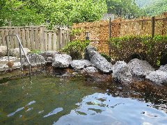 「しおじの湯」の露天風呂 (山が見えます) |