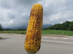 「高原野菜直売わたなべ」の焼きもろこし (ジューシーで美味しいです) |