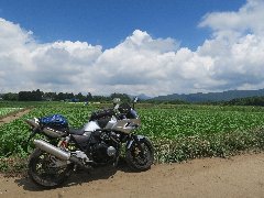 まあ暑いのは分かっているので触れません。夏なのでひまわりとやっぱり高原を目指してしまいました。 平日ですが、厳しい渋滞予報。どうやらETCの休日割引が今日に設定されたせいのようです。余計なことを・・・。警戒してちょっと早めに出たのでなんとか回避できました。先ずは韮崎ICで降りて明野のひまわり畑を目指しました。ひまわりはきれいでしたが肝心の南アルプスは雲の中でした。今日は前上は晴れてますが山は曇っています。八ヶ岳もダメっぽいです。それから金津のおいしい学校にパンを買いに行きました。旧金津学校の校舎はノスタルジックな気分になります。そしていつもの平沢峠にやって来ましたが、やっぱり八ヶ岳は雲の中でした・・・。まあ分かってましたが。それでも野辺山のレタス畑をうろうろしていい景色を探しました。その後、美し森の展望台に登るか悩んだ末やめ、小淵沢に移動しました。ようやく遅い昼食、珍しくジンギスカンを食べました。汗だくでした。三分一湧水で涼んだ後、富士見の温泉に向かいましたが、駐車場が混んでて入る気が失せました。近くの洒落たカフェで一服してから小淵沢に戻り、初めて小海線の大曲に行ってみました。なかなかいい場所で晴れてたら良さそうです。でも本数が少ないのでなかなか列車は来ません。30分ぐらい待って1本通りました。最後に韮崎まで戻って定食屋でラーメンを食べて帰りました。15kmほど渋滞してました。 平日ツーリングだと思っていたのに休日並みの混雑でした。予想以上に雲が多くはっきりしない天気でした。でもそのおかげで若干気温が低めでした。何回も行ってますが、やっぱり高原といえばこの辺りを目指してしまいます。雄大な景色が好きなんですね。 |