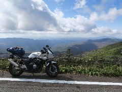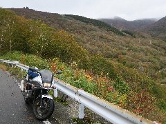 10月ですが、やっと夏休みが取れました。最近、どうもロングツーリングに行くと途中で疲れてしまう傾向があります。これはだんだん体力がなくなってきたせいだと思われます。元気な内に遠くへ行こう、と言う事で東北へ行ってきました。 1日目です。渋滞予測がある東北道は避けて、常磐道で北上しました。家から70kmを走ってパーキングで休憩していると違和感に包まれました。あれ?タンクバッグが無い?どこかで落とした?考えた末、自宅の駐車場に置きっ放しにしたようです。今回、アクセルを固定する器具を買って付けてみることに下のですが、それに気を取られて忘れたようです。う〜ん・・・。どうしよう。本気で往復140km走って取りに行こうかと考えましたが、よく考えたらバカらしくなって諦めました。そして出発しました。仙台から東北道に入りました。福島県辺りまでは晴れていたのですが、北上するとだんだん雲が増え平泉辺りで雨がぱらつきました。そして14時半、ようやく盛岡ICに着きました。アクセルの器具は割りと使えました。そして遅い昼ご飯を食べてから網張温泉に向かいました。期待した岩手山の眺めは曇ってダメでした。温泉を満喫してから宿泊地の盛岡に到着しました。疲れました。 2日目です。有名なパン屋の行列に並んだ後、岩手山麓にある松川温泉に向かいました。白濁の温泉はやっぱりいいですね〜。八幡平樹海ラインを登っていきます。山の中腹ぐらいが紅葉していました。天気もよく最高です!見返峠を越えて秋田県側に下っていきます。こちらの紅葉もよかったです。写真ばかり撮って、なかなか進まなかったです。そんな中、側溝に足を踏み外し、弁慶を強打しました。かなり腫れました。痛い・・・。でも捻挫や骨折しなくてよかったです。そして北上し鹿角で昼ご飯を食べました。さらに北上し青森県に入りました。青森県に入ってすぐにあった古遠部温泉に寄ってみました。なかなか玄人好みの温泉でした。打撲で温泉入ったせいか足がかなり腫れています・・・。ちょっと遅くなってしまったので高速で黒石までワープしました。黒石つゆやきそばを食べてから、本日の宿泊地、初の弘前に到着です。青森県10年ぶりです。 3日目です。弘前城も気になりましたが、先ずは岩木山の麓にある百沢温泉に向かいました。早過ぎたので岩木山神社に寄りました。とても立派な神社でした。百沢温泉を満喫してから岩木山の西側の麓を通ってこの旅の最北端、鯵ヶ沢に行きました。今回の旅の最北端です。港で海鮮丼を食べてから日本海側を南下しました。驫木駅はよかったですが、それ以外は特に見どころが特に無く海沿いをひたすら走ります。予定していた温泉は休みでした。せっかくなので十二湖に寄ってみました。青池は太陽が傾いてしまって日差しが入らずイマイチでした。さらに南下し、再び秋田県に入りました。男鹿半島にも寄りたかったのですが、もう時間が無くて諦めます。せめて日本海に落ちる夕日を見たくて海に出てみましたが、雲が出てダメでした。そして本日の宿泊地の秋田に到着しました。う〜ん、段々天気が悪くなってきたな〜 4日目です。朝ご飯をお洒落なカフェで食べてから日本海沿いを南下しました。単調な道です。仁賀保から内陸に入り仁賀保高原に行きました。広大な牧草地が広がりいくつもの風車が回っています。さらにその先に鳥海山が見えるはずでしたが雲の中でした・・・。天気が良ければこの辺りを巡ろうかと思ってましたが先に進みます。山を下って由利高原鳥海山ろく線の矢島駅に寄ってみました。とても長閑な駅でした。国道108号を南下し秋ノ宮温泉郷に寄ってから鳴子を目指しました。霧雨が降る中を宮城県に入り、今日の宿泊地の鳴子温泉に着きました。ちょこっと温泉めぐりしました。鳴子温泉ってすごいですね。 5日目です。雨です。止みそうもないので出発します。国道47号を西に進み山形県に入りました。赤倉温泉に着くと雨は止んでいましたがどんより曇っています。山形でもいろいろ予定していたのですが、いつ降ってもおかしくないのでスルーします。やっぱり長井辺りで雨が降ってきました。2年前のGWも山形では大雨にあいました。何か因縁があるのでしょうか。そこからは雨の中をひたすら走り福島県まで一気に走りました。そして本日の宿泊地の喜多方に到着しました。あ〜疲れた・・・。それほど寒くないので救われました。 6日目です。雨です。急いでも仕方ないので徒歩で朝ラーしました。雨が止んできたので裏磐梯に向かいました。でも雲は全然なくならず、ずっと曇っています。特に展望もないので裏磐梯をスルーして中ノ沢温泉に向かいました。続いて野地温泉を満喫していると雨が降り出しました。しばらくホテルのロビーで雨宿りしていました。ちょっと小降りになったので出発すると、山道から虹を見ることが出来ました。山を下ると全然降っていませんでした。しかも晴れてき