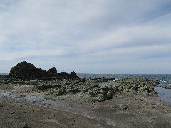 | 千畳敷と日本海 (何故か岩が緑色っぽいです) |