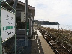 驫木駅のホーム (目の前は日本海です) |