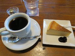 「ボナンザ」の ブレンドコーヒーとチーズケーキ |