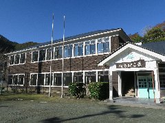 西伊豆町、「やまびこ荘」の外観 (旧大沢里小学校を改装した宿です) |