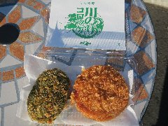 「アサイミート」の川のりコロッケと厚切りハムフライ (注文後に揚げます) |