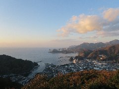 牛原山展望塔からの景色@ (夕暮れの松崎の街と駿河湾) |