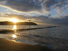 | 原岡海岸からの景色@ (冬は結構南寄りに日が落ちます) |