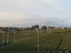 | 富士市、茶畑と富士山@ (ちょっと遅かったかな〜) |