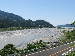 林道豊岡梅ヶ島線の景色I (大城川沿い、やっと平らな道です) |
