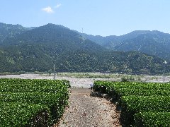 安部川沿いの段丘の茶畑A (緑が鮮やかです) |