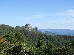 県道93号の田口峠からの景色 (立岩が見えます) |