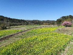 石神の菜の花畑A (鉄道脇からの景色) |