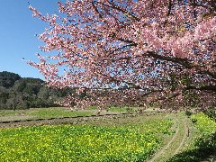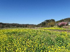 石神の菜の花畑B (桜の木の横からの景色) |