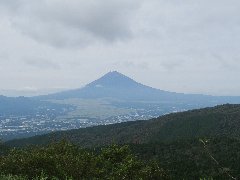 大観山からの景色 (曇ってますが富士山が見えます) |