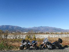 釜無川の土手 (南アルプスの北岳が見えます) |