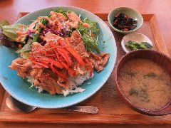 「ふたば食堂」の豚バラ肉の焼肉ごはん (ボリュームがあって美味しいです) |