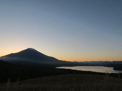 県道730号のパノラマ台付近からの景色 (夕暮れの富士山と山中湖) |