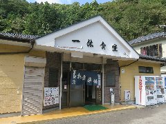 山北町、「中川温泉 ぶなの湯」の外観 (河内川のほとりにあります) |