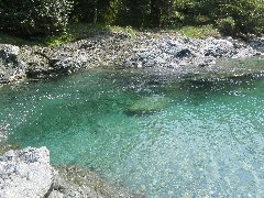 河内川の風景A (緑色に透き通ってとてもきれいです) |