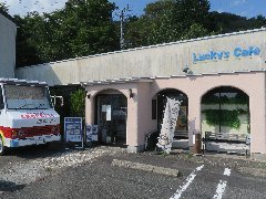 箱根町、「ラッキィズ カフェ」の外観 (クレープの移動販売もやってるのかな?) |