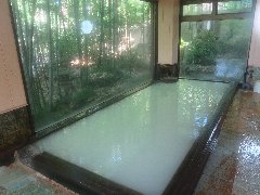 「箱根温泉山荘なかむら」の大浴場 (白濁の温泉です) |