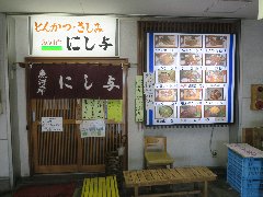 沼津市、「にし与」の外観 (平日のお昼ですが満席でした) |