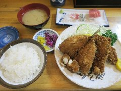 「にし与」の魚河岸定食 (アジのフライや刺身も付きます) |