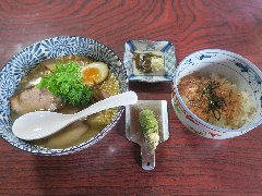 「伊豆あまからや」の本わさび満喫セット (わさびの塩ラーメンとわさび飯) |