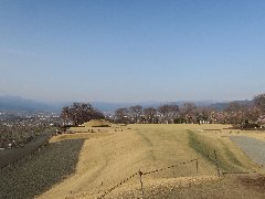 笛吹市、八代ふるさと公園の岡・銚子塚古墳 (小ぢんまりした前方後円墳です) |
