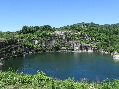 石切山脈の第二展示場より@ (前山採掘場跡に水が溜まった池です) |