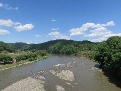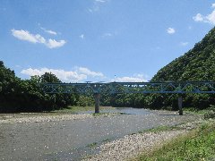 大瀬観光やなからの大瀬橋 (ヤナは7月ごろに作られるそうです) |