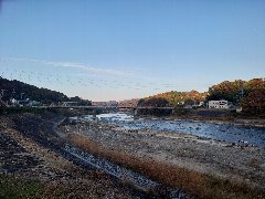身延町、富士川の河川敷A (飯富橋が見えます、日が暮れてきました) |