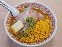「めん丸豊富店」の味噌チャーシューラーメン (バターコーントッピング) |