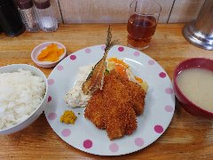 「せきの」の地鯵フライ定食 (骨せんべい付き) |