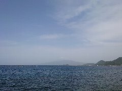 長井崎付近の風景B (ぽっこりしてるのは淡島です) |