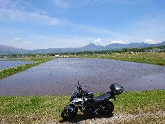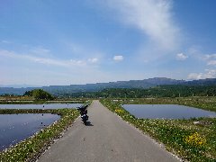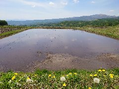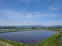 茅野市、八ヶ岳エコーライン沿いの風景@ (田んぼに空が映ってきれいです) |