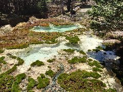 「唐沢鉱泉」の源泉池@ (青っぽい鉱泉です) |