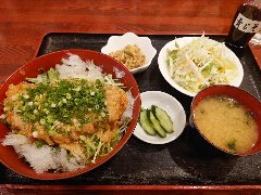 「ごちそう処 きむら」の信州諏訪みそかつ丼 (味噌だれと寒天が特徴です) |