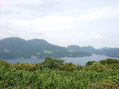 県道736号からの景色A (奥の方に芦ノ湖が見えます) |