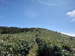 仁科峠展望台への道 (熊笹の山道を登って行きます) |