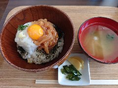 「沖あがり食堂」のいか様丼 (イカ刺しとイカヅケ刺し) |