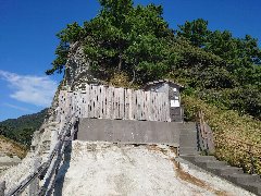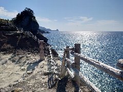 西伊豆町、「沢田公園露天風呂」の外観 (海沿いの断崖の上にあります) |