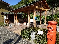 木曽町、「二本木の湯」の外観 (長閑なところにあります) |
