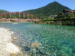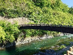 大桑村、阿寺渓谷@ (つり橋付近、緑の渓流) |