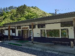 木曽町、「けやきの湯」の外観 (西野川の近くにぽつんとあります) |