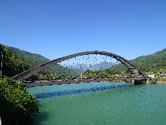 木曽川に架かる阿寺橋 (奥には木曽山脈が見えます) |