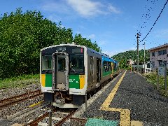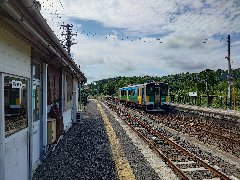久留里駅のホーム@ (下りの列車が停車中) |