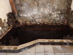 「嵯峨和旅館」の内風呂 (コーヒーのような色、つるつるです) |