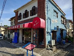 勝浦、「やまご食堂」の外観 (隣は元魚屋) |
