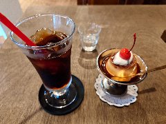 「コトノ珈琲」のコールドブリューと焼きプリン (美味しいです) |